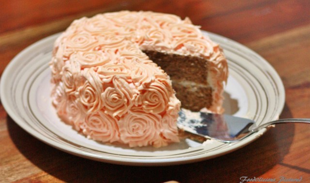 I have frosted the cake with butter cream with rose swirl design.
