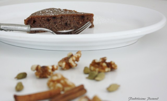 | Spiced walnut and chocolate cookies cake with rosewater-sugar syrup |