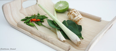 - Add the lemongrass, galangal/ginger, chilies, lime leaves, garlic, salt and pepper, Stir well and bring to boil again.