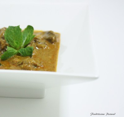- Add the thin coconut milk and pressure cook till the mutton is done on a medium-low heat.