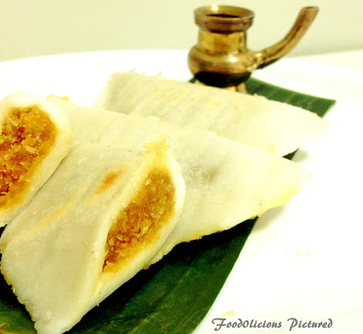 - Place a tablespoon of the filling in the centre. Fold the leaf over to form a half moon shape.