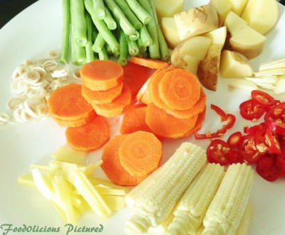 - Heat oil in a large saucepan. Add the lemongrass, ginger, onion, garlic and fry till the onion and garlic are soft.