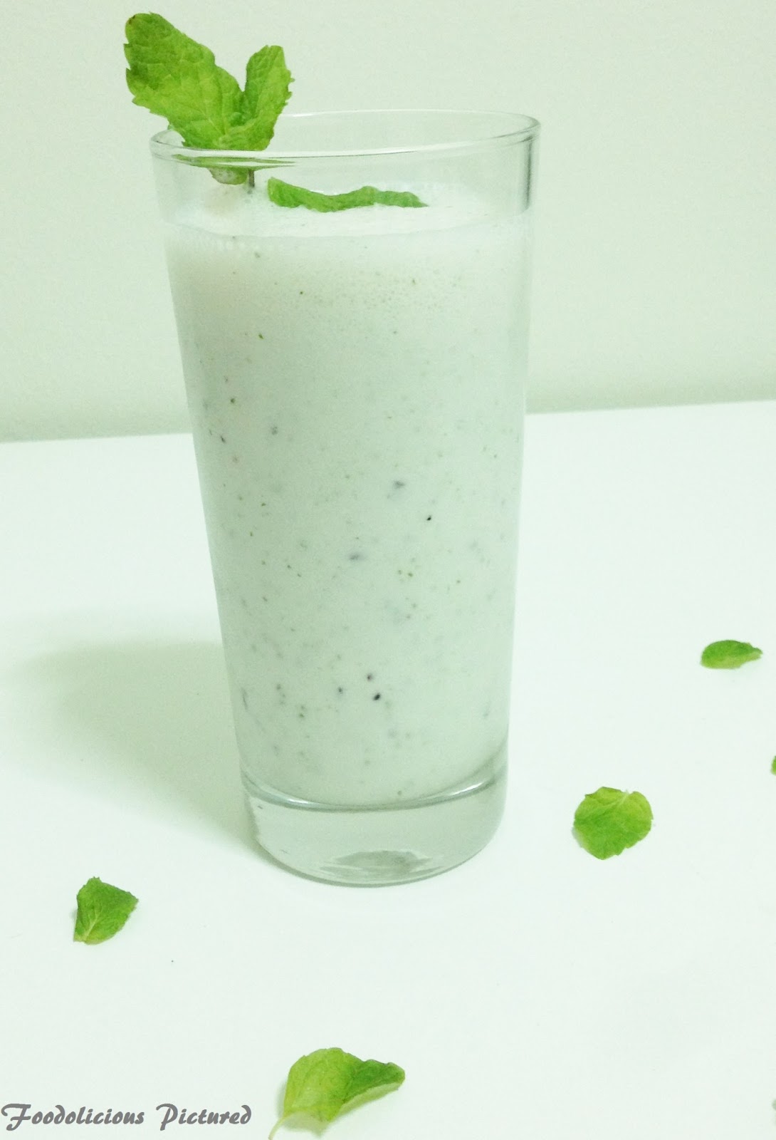 - Beat all the above ingredients (except ice cubes) in a blender till smooth.