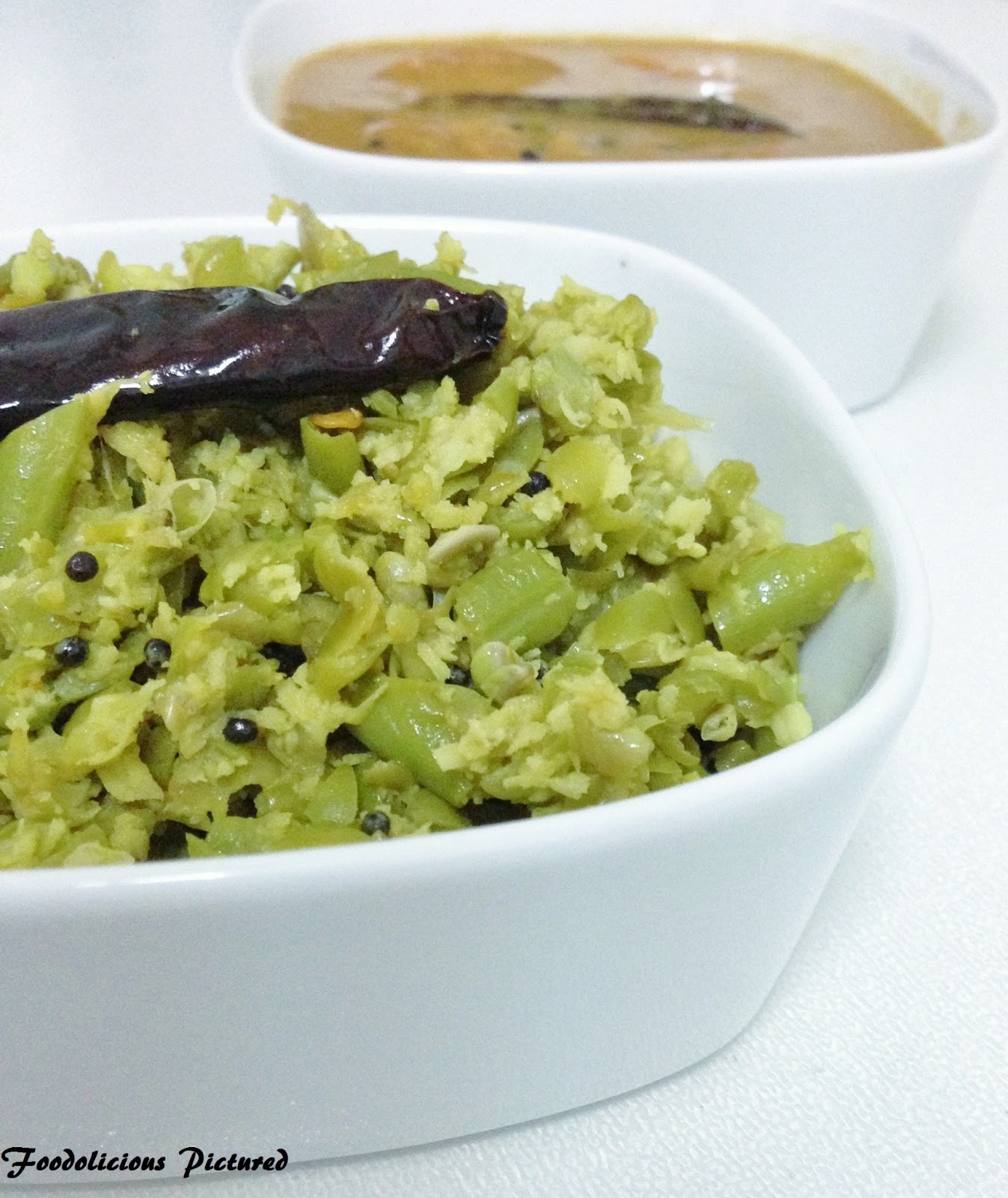 - Grind the coconut, onion, turmeric and green chili coarsely. Set aside.