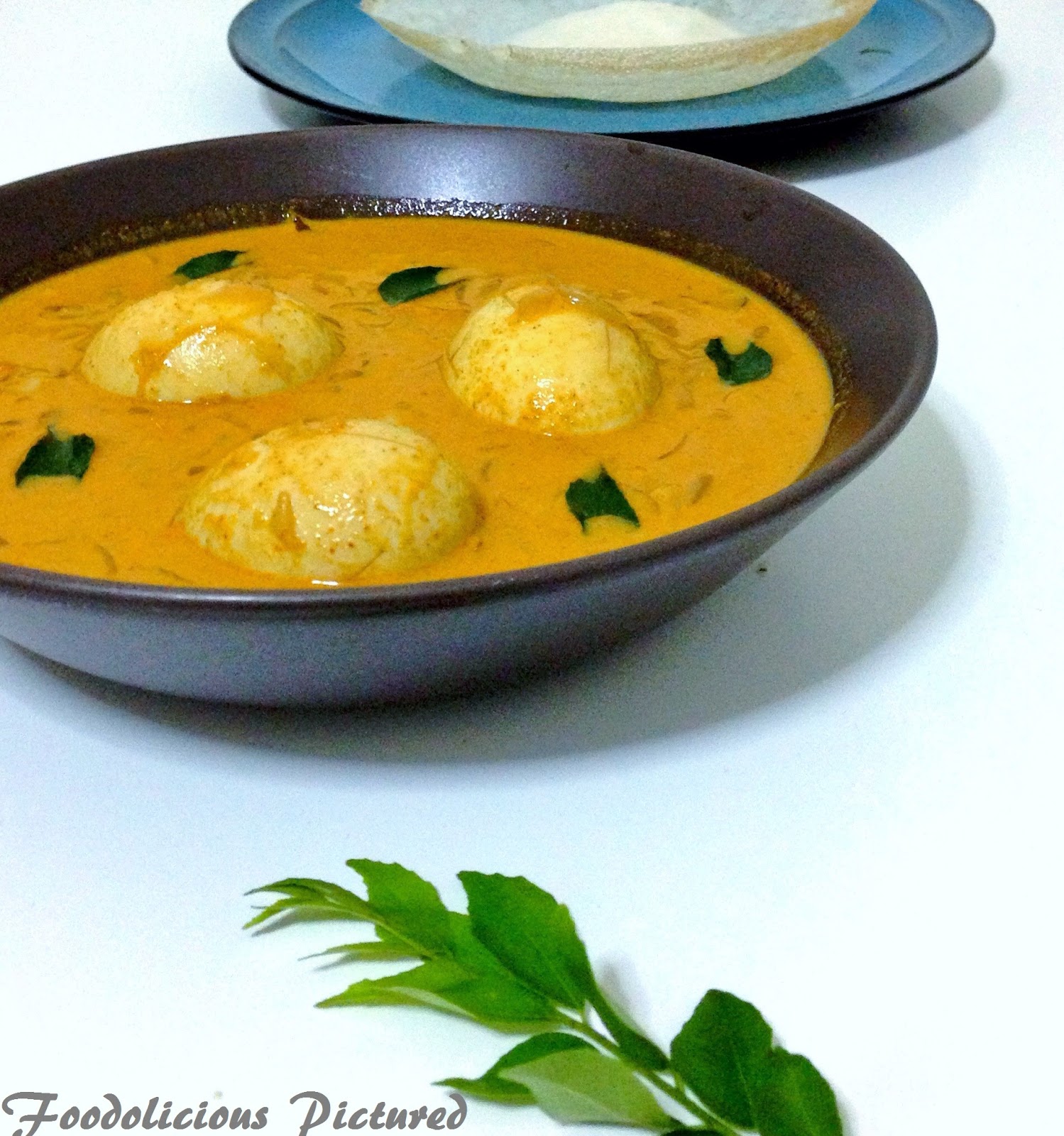 - Add the thin/second extraction of the coconut milk, curry leave, boiled eggs and cook for 5 mins.