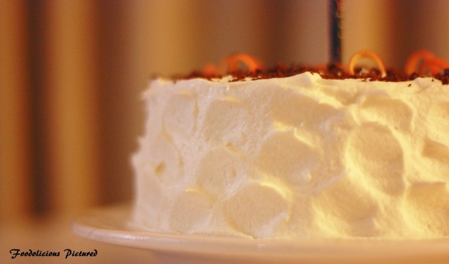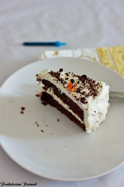 Sift in the flour, cocoa baking powder and gently fold in. When the flour is almost mixed in, add the olive oil, orange zest and juice and continue to fold in gently till well combined.