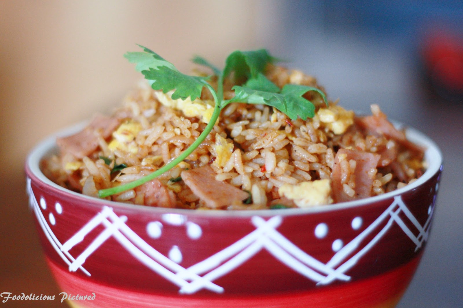 Heat oil in a wok; add the onion and garlic. Cook till the onion is translucent. Add the chili paste , cook for 2 minutes. Tip in the ham, salt, mix and cook for 3-4 minutes stirring frequently.