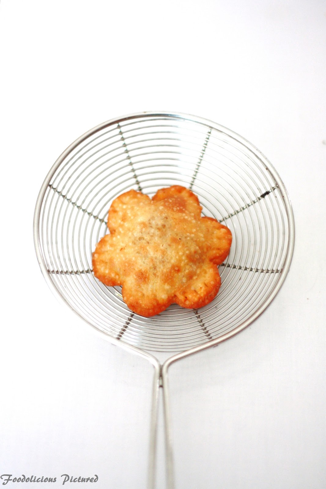 Heat enough oil in a frying pan, Deep fry the filled pastries till golden brown. Remove and set on a paper towel.