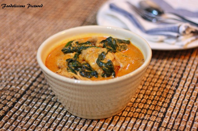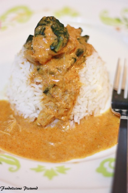 Add chicken and mix well. Add ¼ cup or as required water, cover and cook. Add the spinach during the last 10 minutes of the cooking time. Once the chicken is done uncover, mix the cream in and bring to a simmer. Turn off of the heat.
