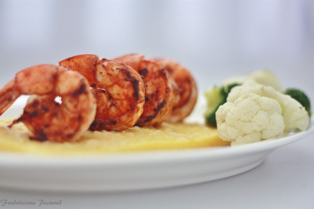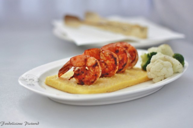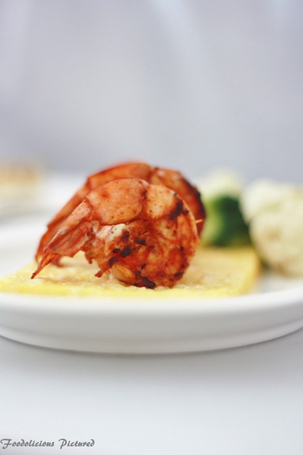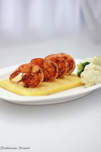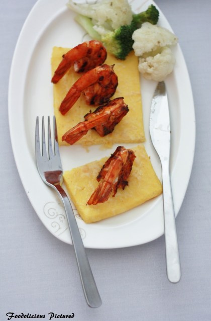 Place the polenta into a serving plate and top with the grilled prawns. Serve with steamed veggies of your choice.