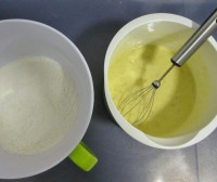 Stir the wet ingredients to the dry and fold gently till everything is just combined. Do not over mix the batter should be chunky.