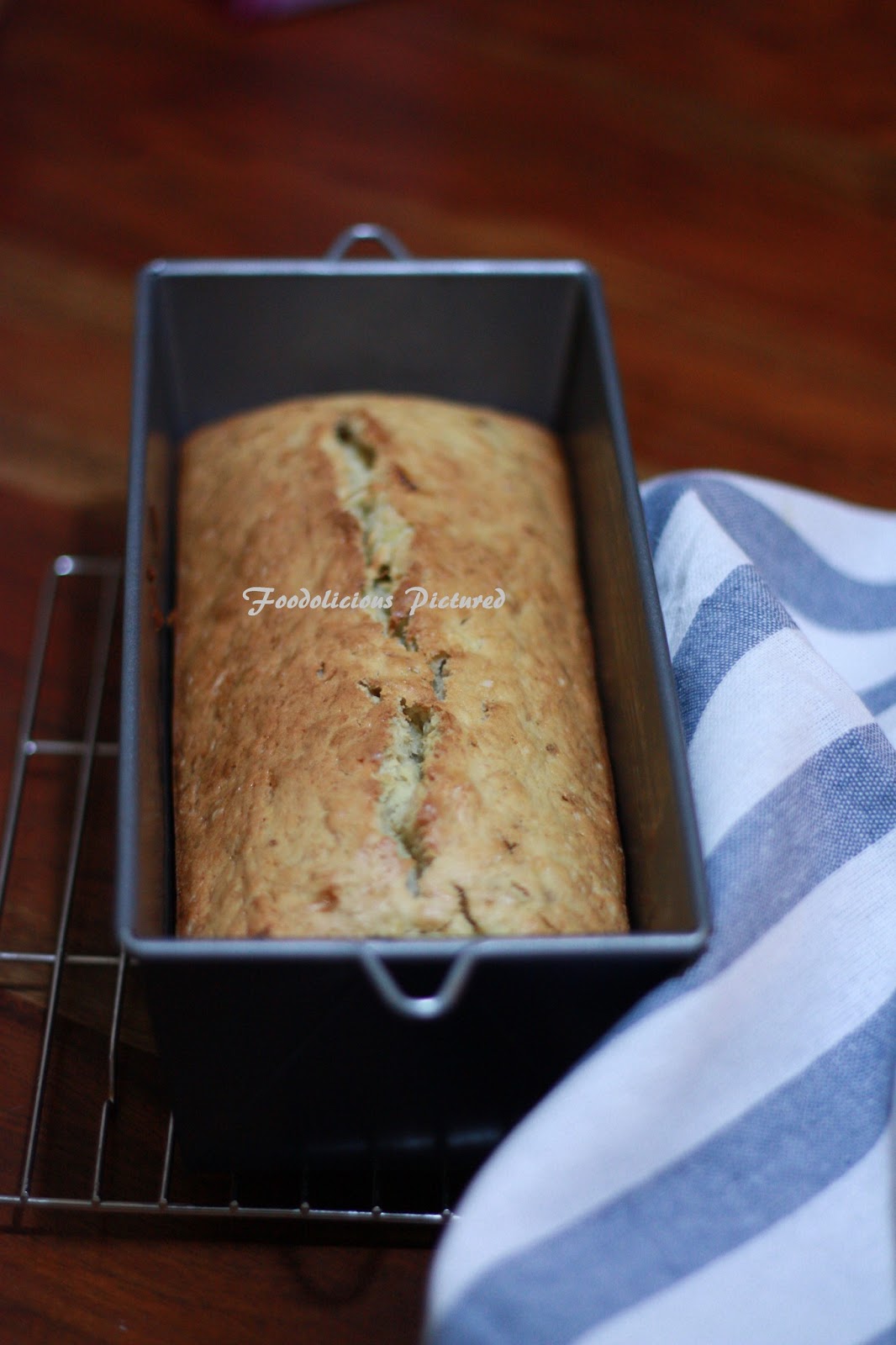 Pour the mixture into the prepared loaf pan and bake for 45 minutes or till the toothpick comes out clean when inserted in the center of the loaf.