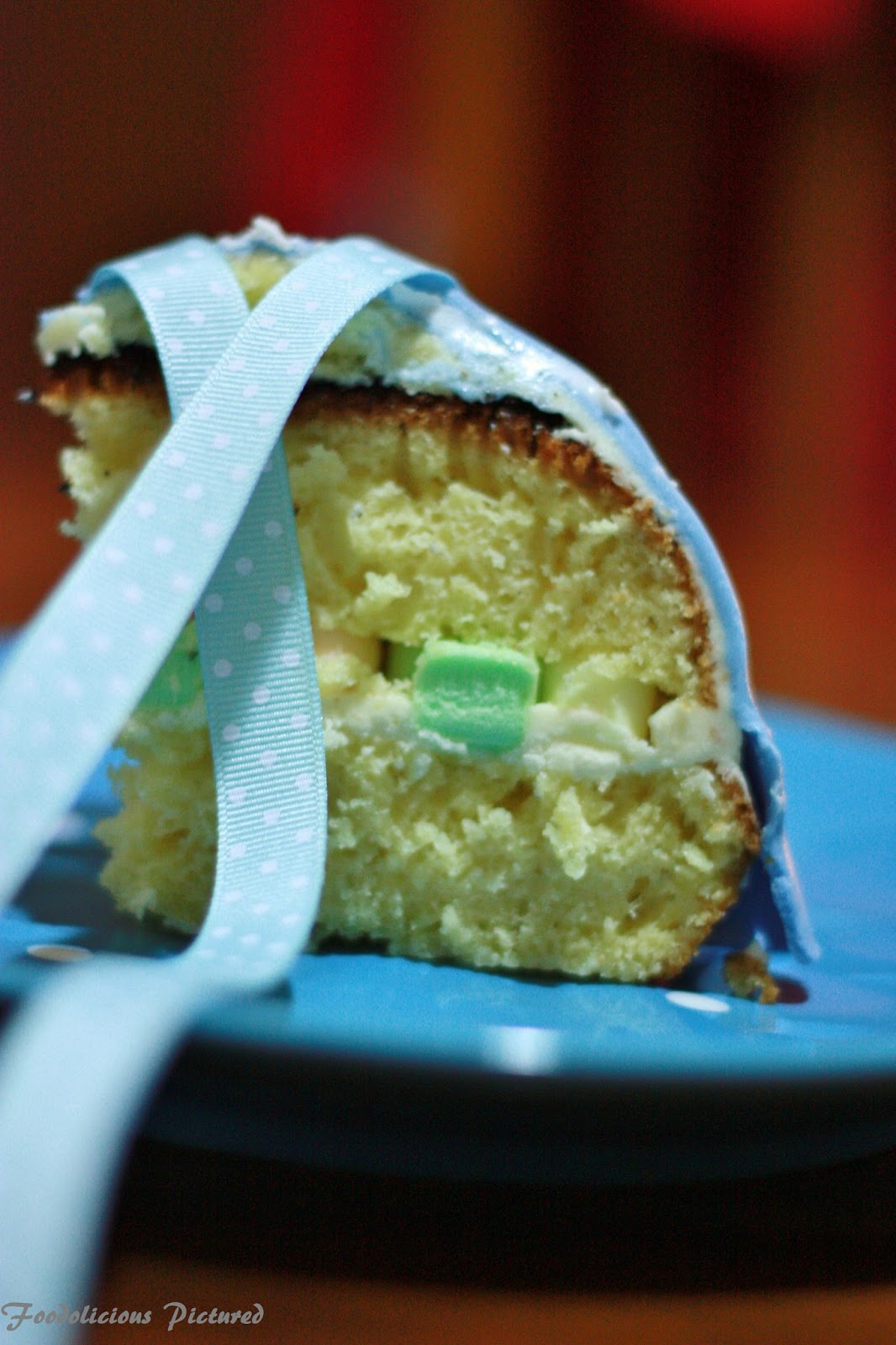 This is simple butter cake with butter cream-marshmallow filling and fondant icing. Well I am not a fan of fondant icing especially for kids but then to decorate such cakes they are best. Once the cake is cut I scrape some off before feeding my daughter or kids.