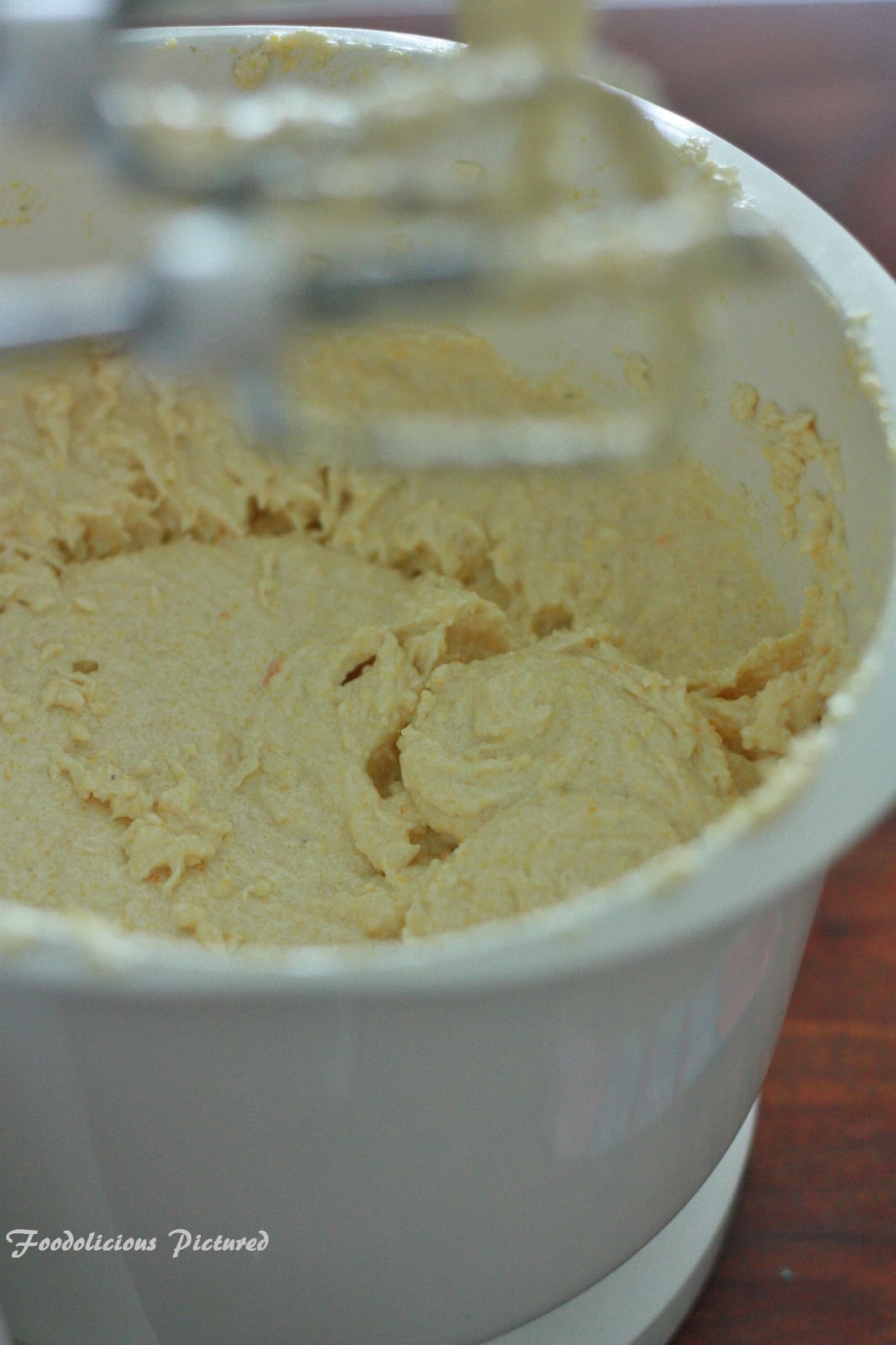 In a bowl, beat the butter and sugar together until light and fluffy. Beat in the eggs, one by one, mixing continuously.