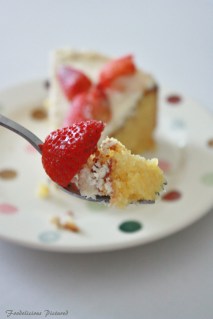 You can decorate the cake with fresh fruits or the frosting of your choice. I have used Coconut cream cheese frosting.
