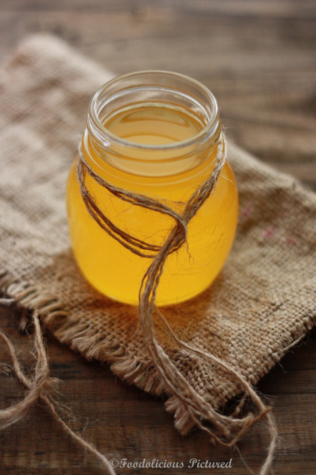 Once completely cooled, using a fine strainer or cheese cloth strain the ghee into a glass jar or container. Cover tightly and store at room temperature. Use as required.