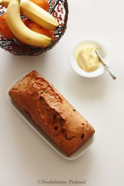 Spoon the batter into the greased loaf pan and bake for 50-60 minutes or till the toothpick comes out clean when inserted in the middle of the loaf.