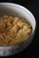 Soak the washed and cleaned dhal in water for 3-4 hours. Strain the dhal well as you don’t want any water with it while grinding.