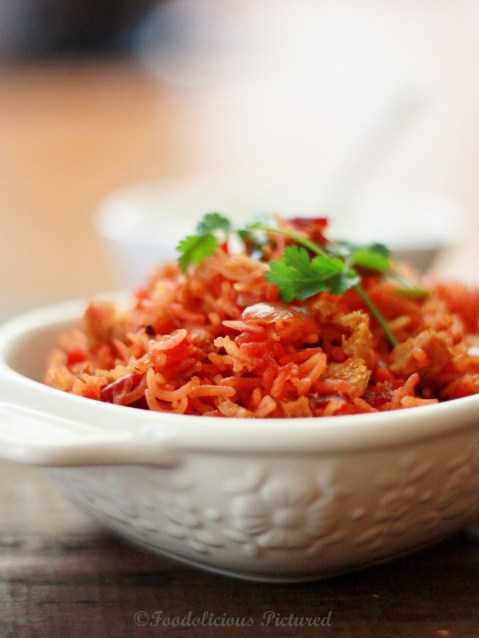 Wash the rice and soak for 15-20 minutes. Drain the water completely and set aside. Mince the soaked soy chucks in food processor. Set aside.