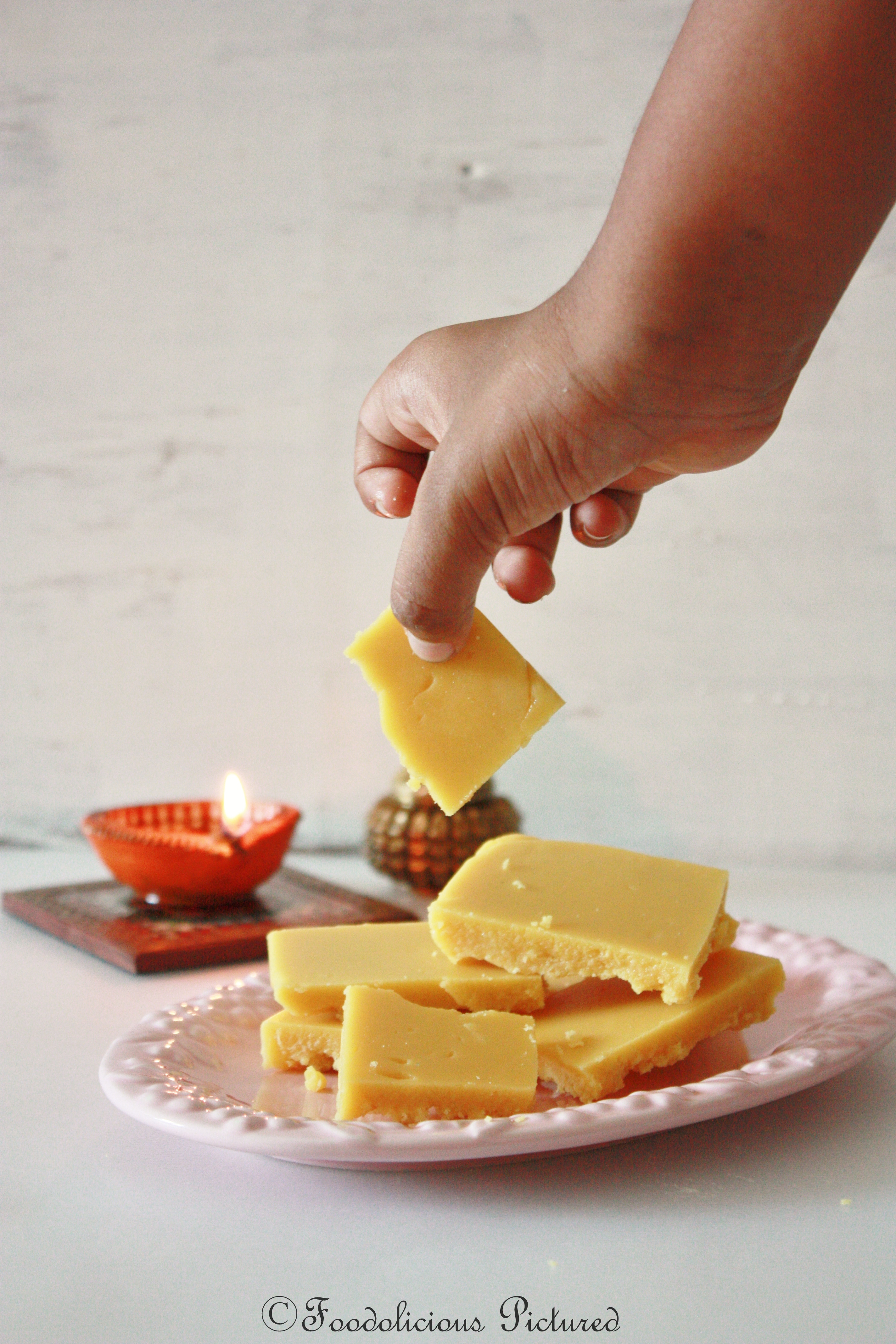 2. Mysore pak looks awesome yellow crumbly melt in the mouth kind. I might have to make with atleast with I kg flour to satisfy my craving.I love the white plate but knowing ur style I miss the brass plate and flowers.