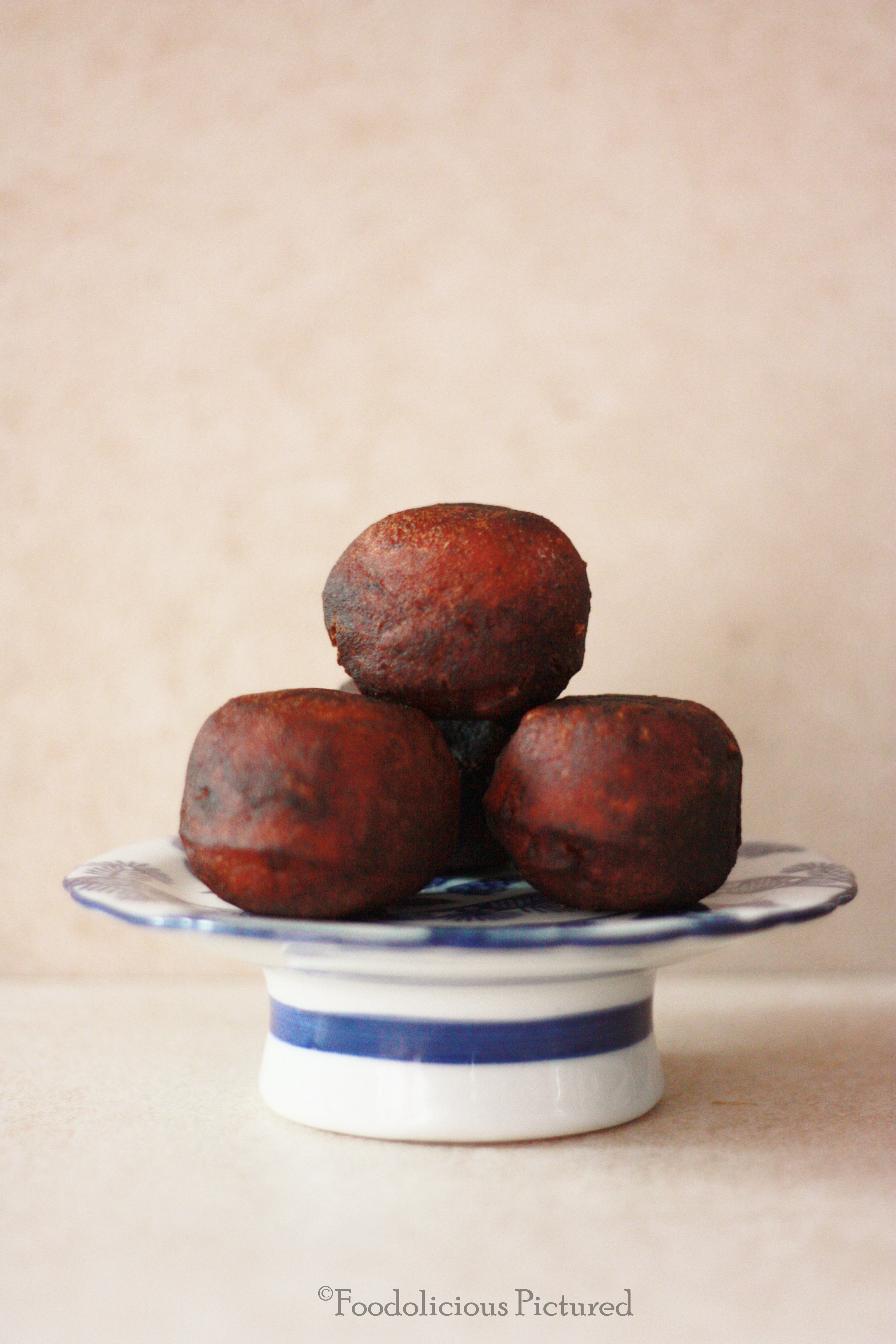 Undan pori – a rather cutely named teatime snack from Kerala that is found in small tea shops throughout the state. They are made of whole wheat,  fried coconut pieces, bananas (Traditionally uses palayankodan pazham/banana)  and palm sugar (Jaggery). Kneaded into a soft and sticky dough  and deep fried till deep golden brown. While frying them make sure you keep the flame on medium else they will be browned to quickly and the inside will not be cooked through.