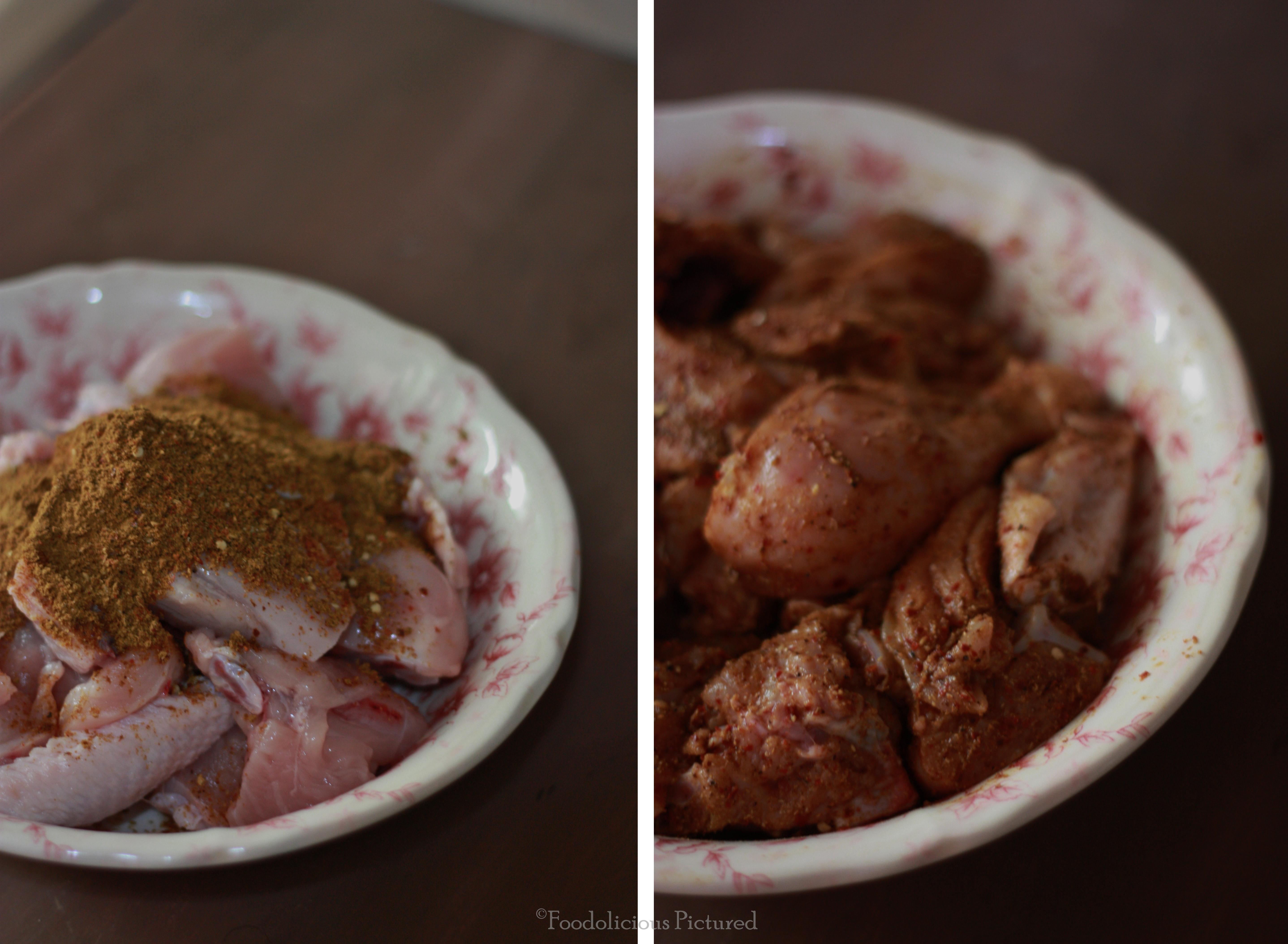 Wash and clean the chicken and cut into bite size pieces. Dry roast all indigents under “to dry roast”. Make a fine powder of the spices in your pestle n motor/spice grinder. Add the powdered spices to the chicken along with vinegar. Coat well and marinate about an hour.