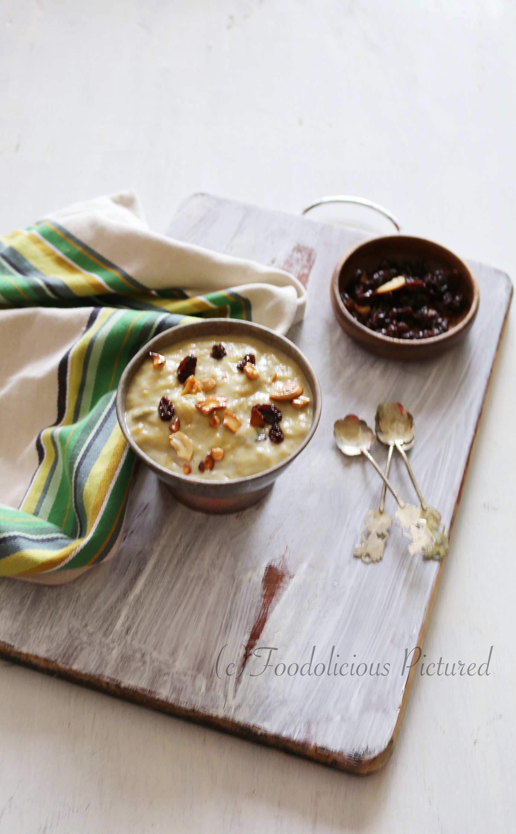 IMG_1156 01-001Almost all festivals or celebrations call for a sadhya (feast) in Kerala, and no feast is complete without payasam(s) or Pradhaman (pudding). I love those awesome wedding feasts which ends with different types of payasam ; three varieties is almost a norm, more the merrier.