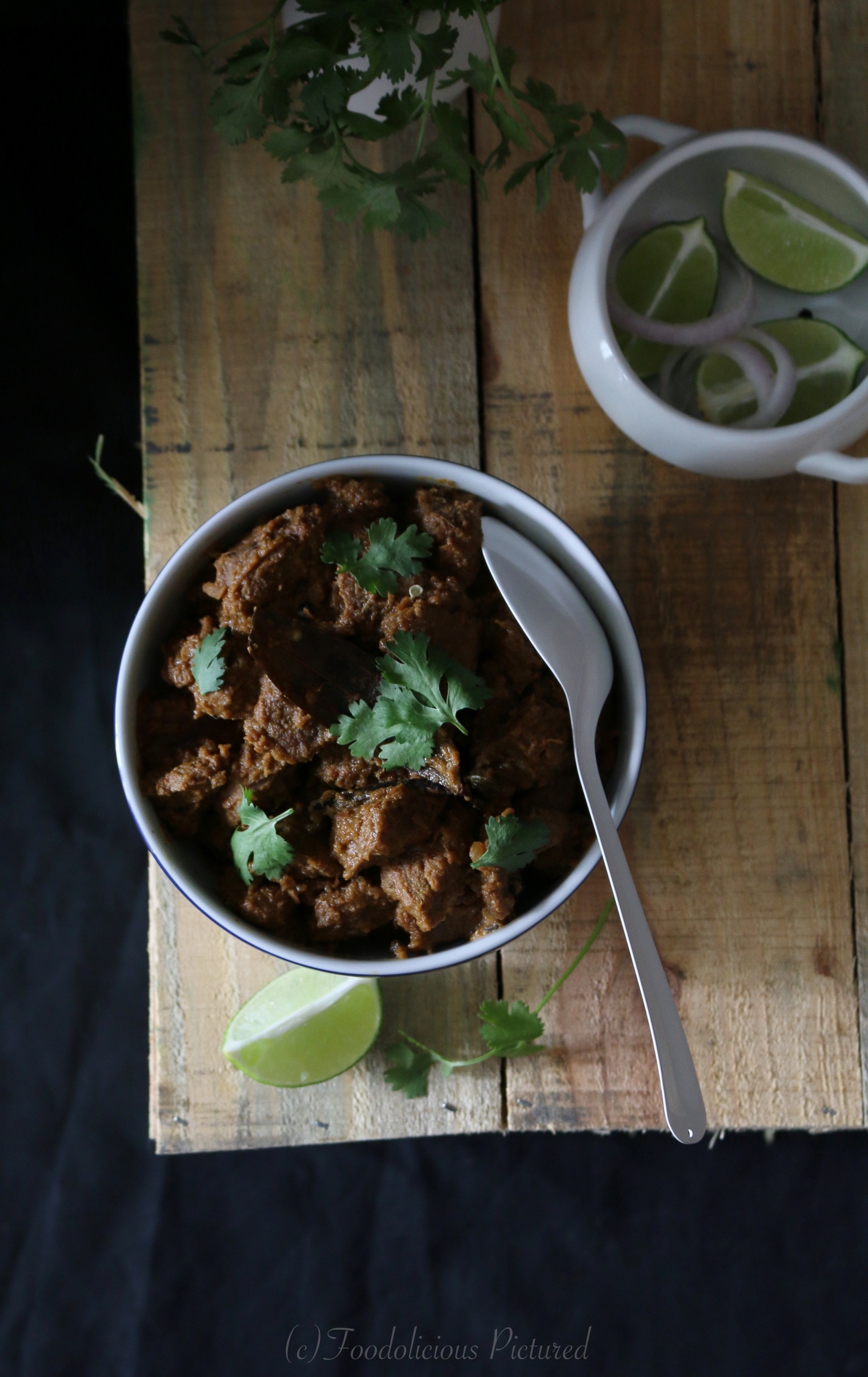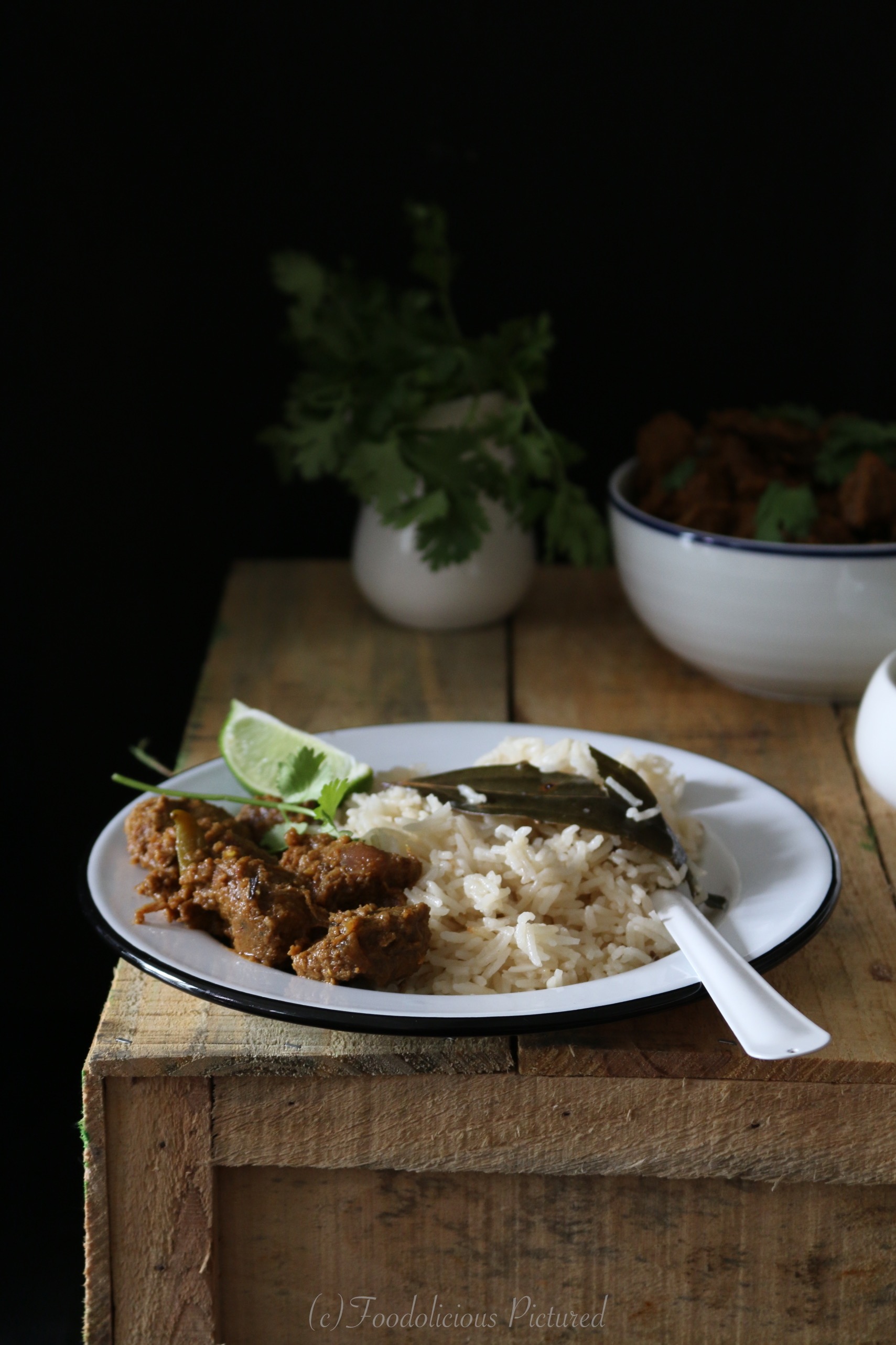 You can do this curry with the meat of your choice (mutton/lamb or beef). Depending on the meat quality, it takes around 45 minutes to an hour to finish off on medium-low flame. Cover and let it simmer until the sauce is almost reduced; best experienced with some flavored rice or any kind of Indian flat bread.