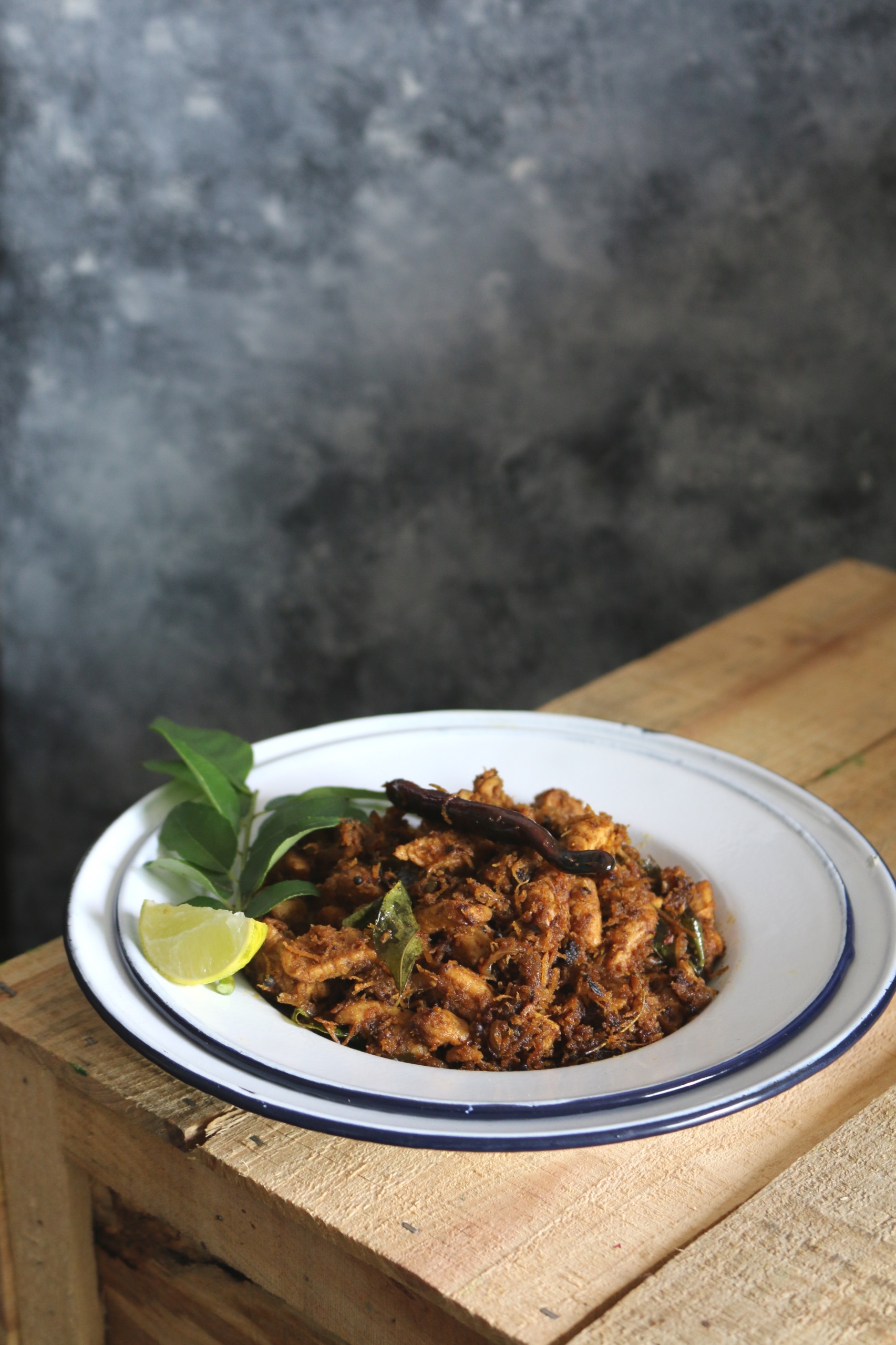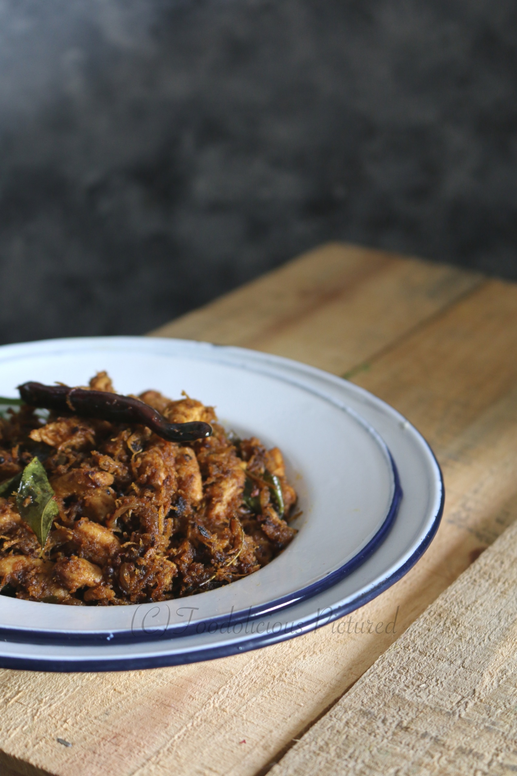 This is as traditional as it can be when it comes to Kerala cuisine, with loads of shallots, freshly grated coconut, coconut oil, and curry leaves. Sauté in low-medium flame to ensure that the coconut is not burned and the chicken remain nice and tender. I do make this with beef, with the meat pressure cooked with a little ginger-garlic paste and turmeric powder. Serve hot with rice and some curry/gravy of your choice.