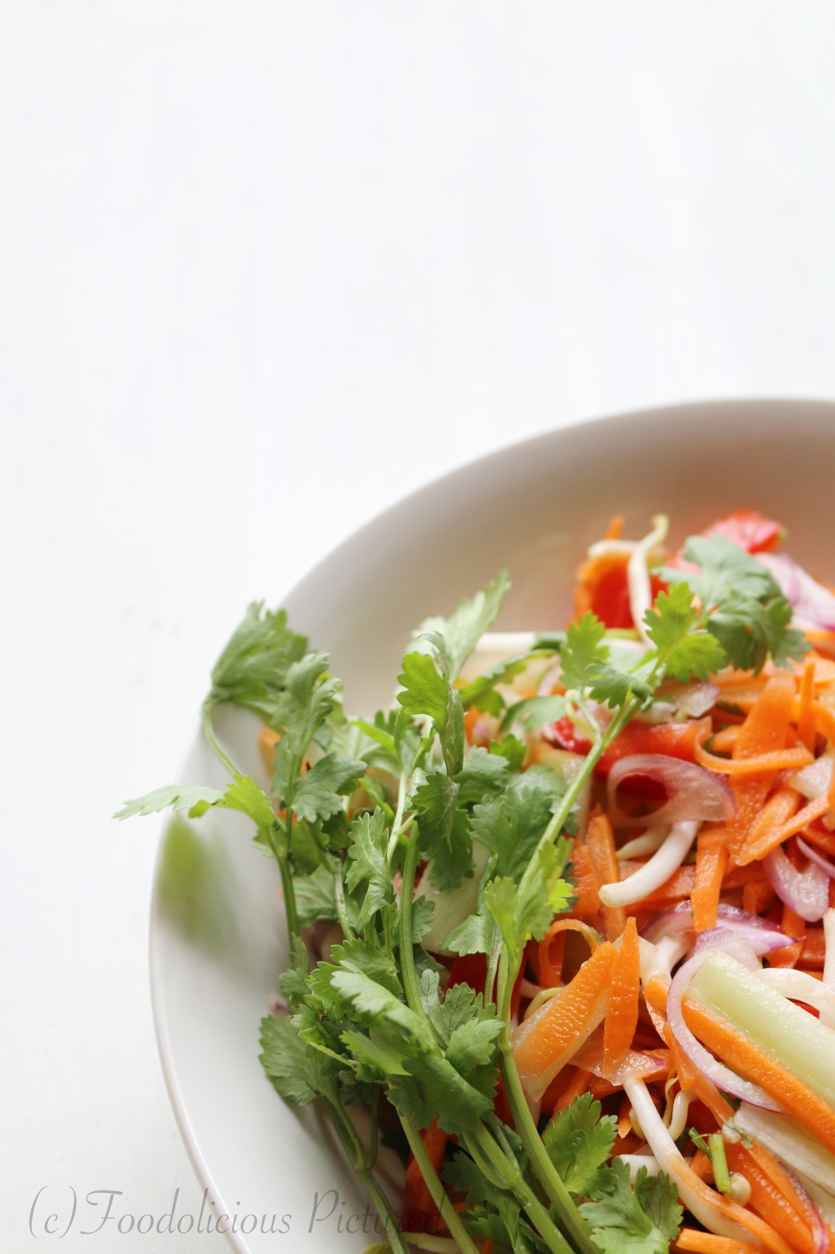 Thai food needs little introduction – its nice, simple, and comforting. Be it a stir-fry, a bowl of soup, or a salad, I love the way simple ingredients come together to create a burst of flavours with an exotic touch. And this beautiful Thai vegetable salad does exactly that, that too with minimum effort – who said salads are boring!!!