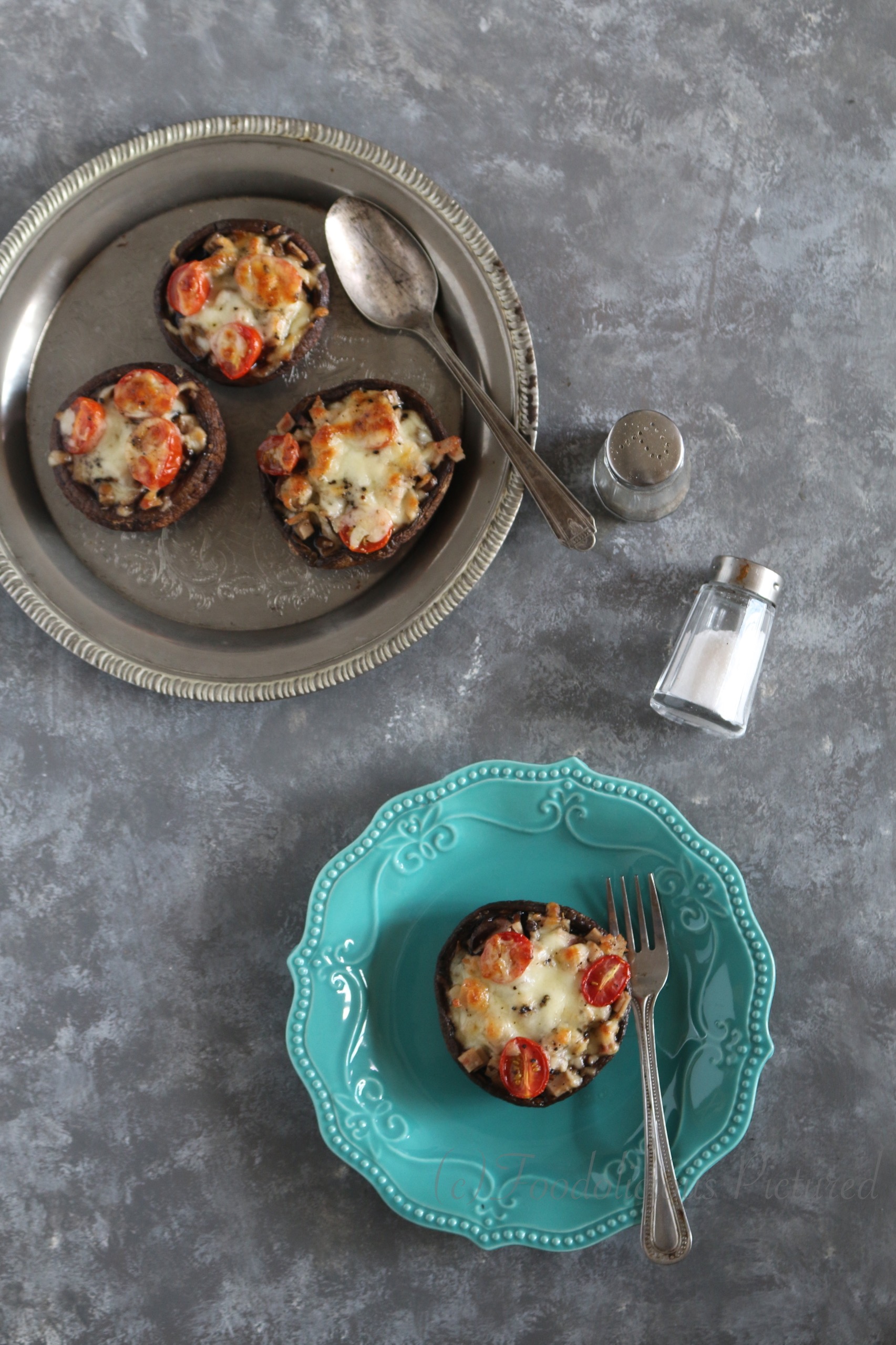 I love to do stuffed food – it helps to fuse in the flavours of the ingredients while the outer cup/crust will impart its own flavour to the dish. This time I stuffed Portobello mushroom caps with bacon sautéed with button mushrooms, seasoned with garlic powder and dried herbs, topped with good amount of mozzarella cheese, and baked to perfection. Works well as an appetizer for your parties/gatherings or can be served as a simple meal.