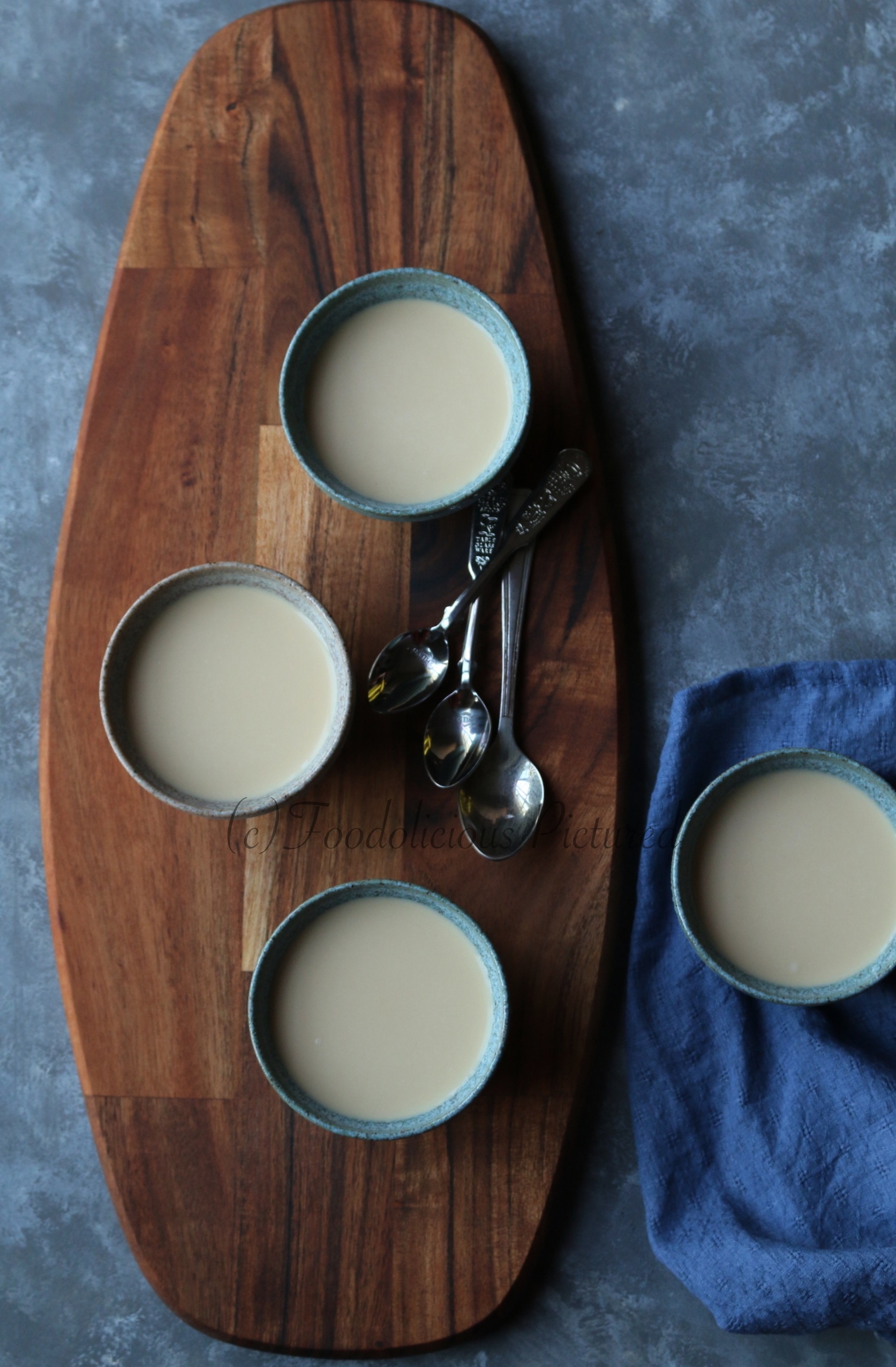 A jar of caramel sauce, which strangely was sitting in the fridge unnoticed for a few weeks. Well, that was perfect for this quick dessert! I had done this with vanilla flavor before, but I feel the rose flavor lent a bit more oomph to the dessert. If you like the vanilla flavor; use a teaspoon of vanilla essence instead of the rose flavor.