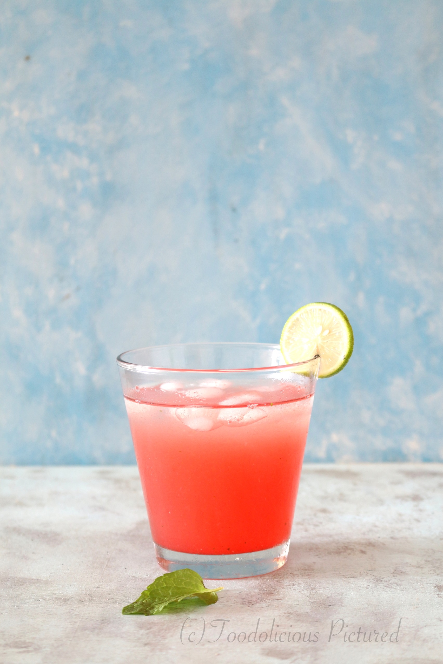 Blend the watermelon and mint leaves till smooth (do not add water). Strain the juice through a fine strainer. Press gently so all the juice is extracted making sure not push the pulp through.