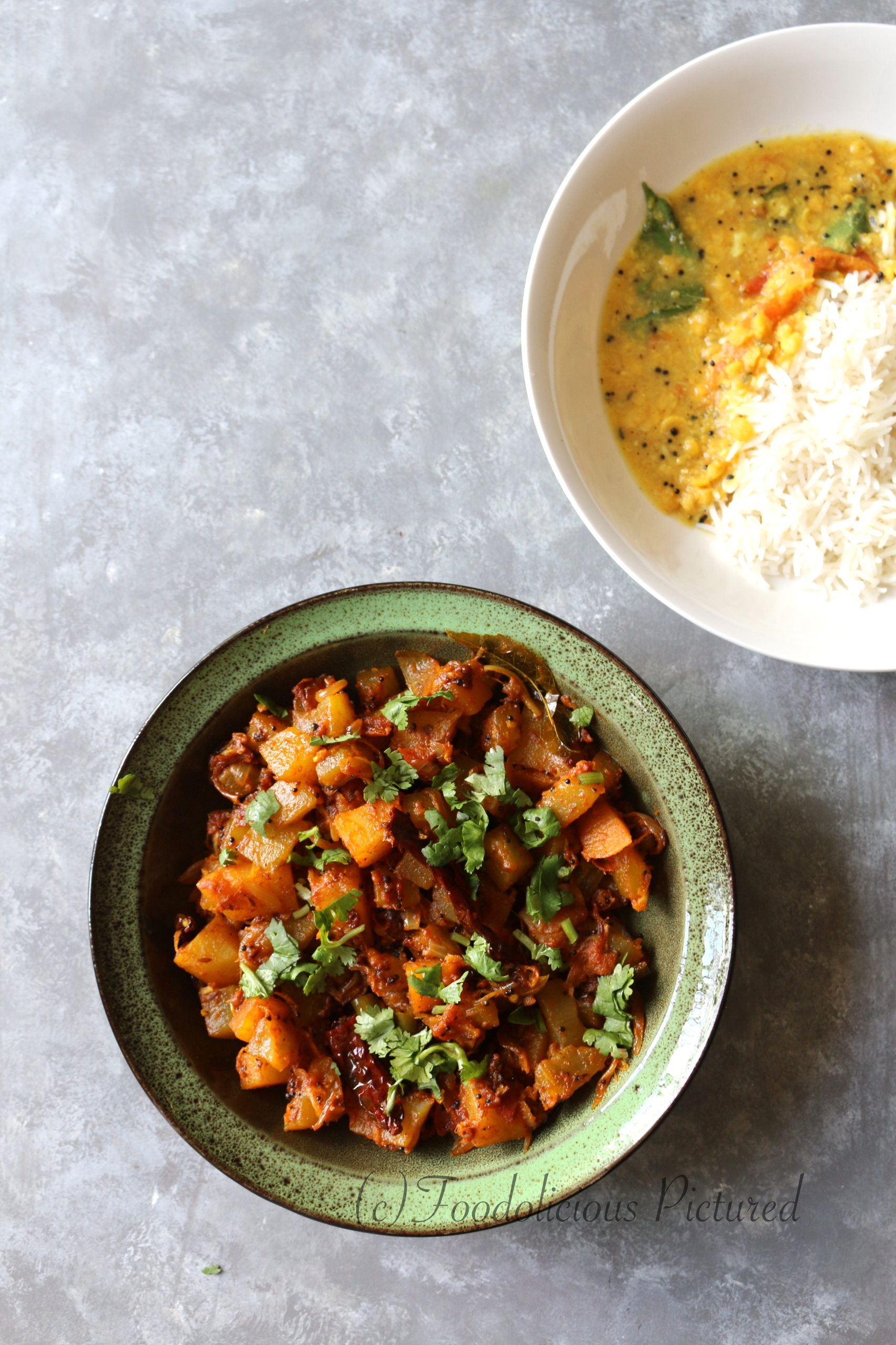 Add tomato and saute till mushy. Add the bottle gourd, potato and salt to taste. Stir will. Add about ¾ cup water, cover and cook till the veggies are cooked through. If the gravy appears too runny then continue to cook uncovered till the desired consistency.