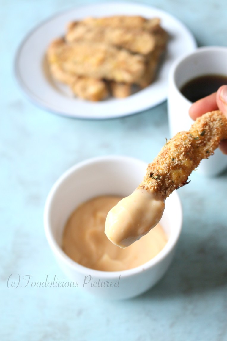 Summer holidays, loads of play-time the the little stomach grumble a bit more than usual, and I have to be ready! Store-brought snacks are an easy option but far from ideal. I wanted to do something healthy and filling did this beautiful baked chicken fingers. It got a nice crunch to bite into and the meat was just perfectly cooked. Make sure not to overcook the chicken slices or it will get hard and rubbery.