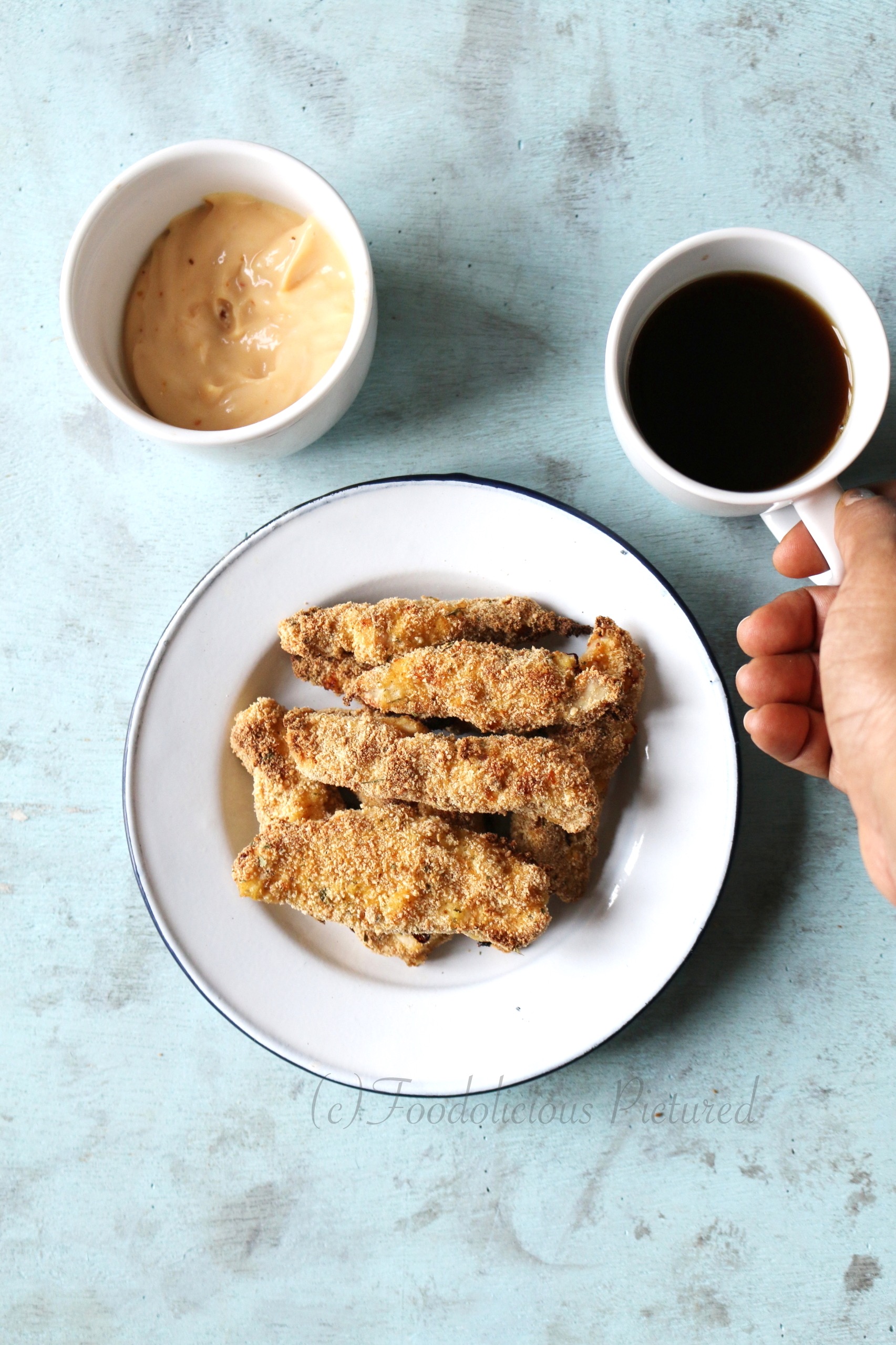 Summer holidays, loads of play-time the the little stomach grumble a bit more than usual, and I have to be ready! Store-brought snacks are an easy option but far from ideal. I wanted to do something healthy and filling did this beautiful baked chicken fingers. It got a nice crunch to bite into and the meat was just perfectly cooked. Make sure not to overcook the chicken slices or it will get hard and rubbery.