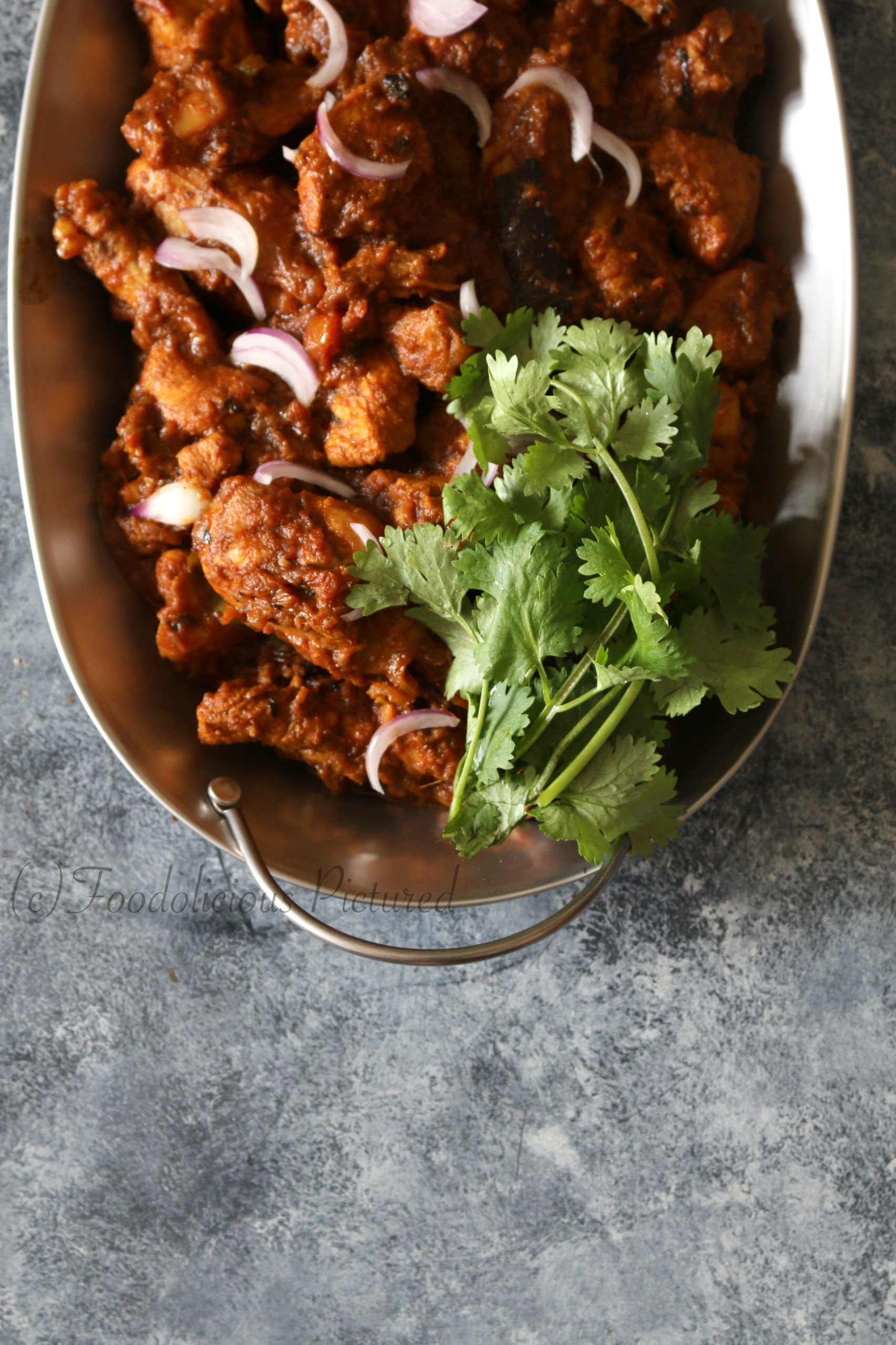 The culinary landscape of India is influenced by many factors, especially when it comes to non-vegetarian dishes; it can by based on geographical considerations, availability of specific types of meat, or religious considerations. Chicken works pretty much everywhere in the country, and each region/province have their own bespoke preparations. The one here – Murg do-Pyaza comes from the northern part of India. The name translates into something like Chicken twice-onions, implying that onion is added twice into the dish, in two different ways, at two different stages of cooking. There is nothing complicated here, pretty straightforward dish to prepare… Please adjust the spices to suit your taste!