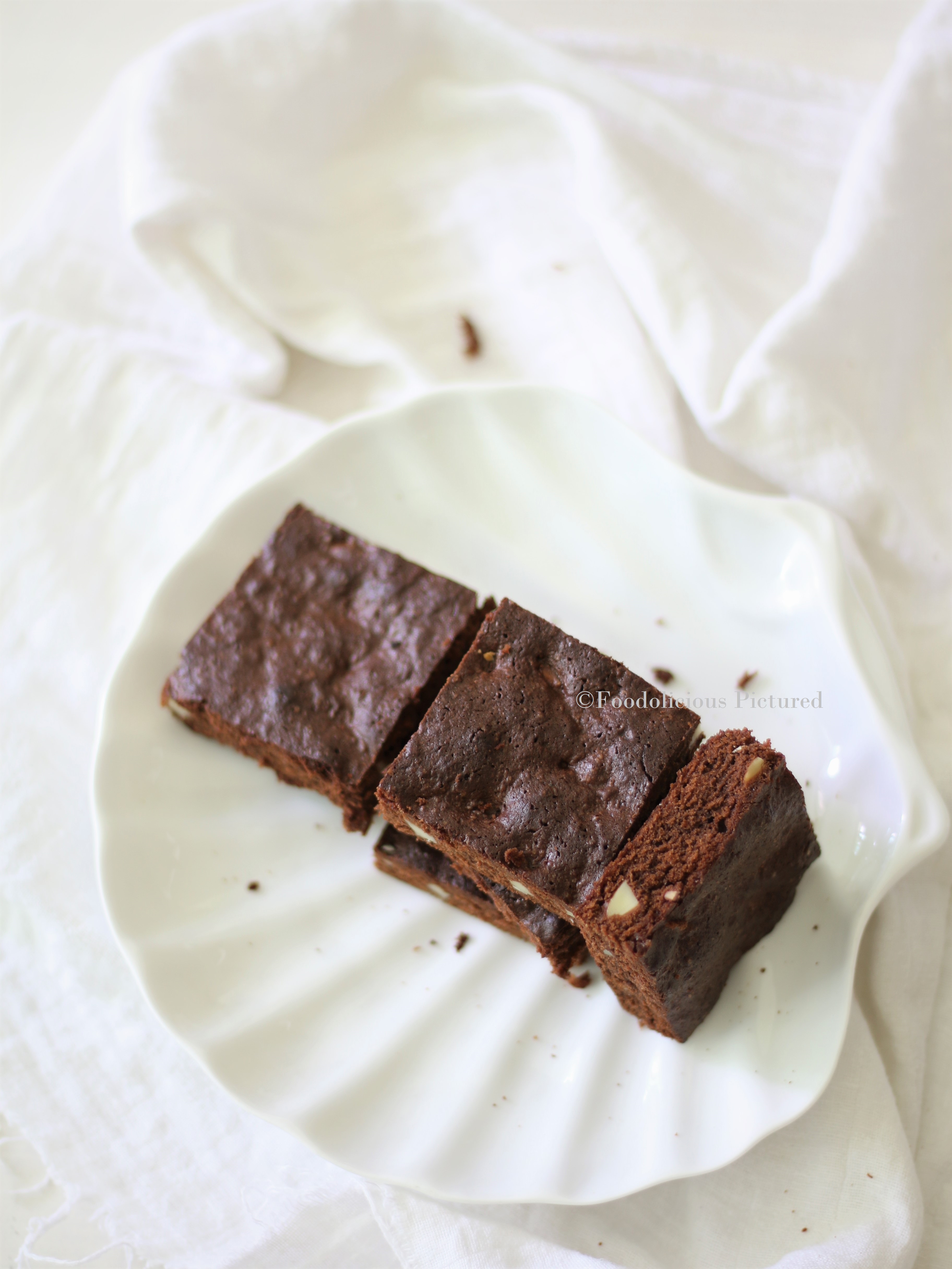 Pour the batter into the prepared cake pan and bake for 30-35 minutes or till the brownie pull away from the pan and has a nice crust on top. Set aside to cool for 10 minutes.