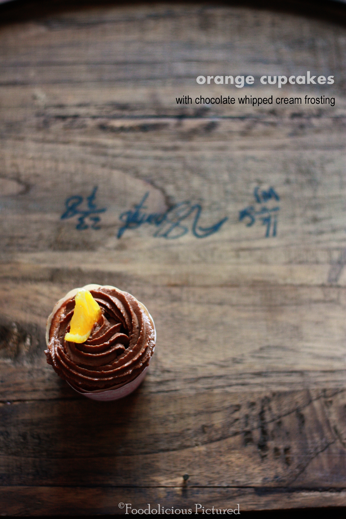 Orange cupcakes with chocolate whipped cream frosting