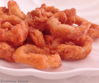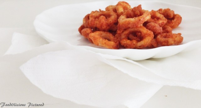 • Cook the rings in batches until golden brown. Drain on a kitchen towel and serve warm.