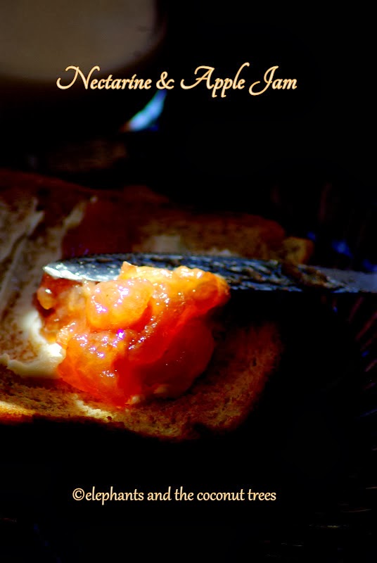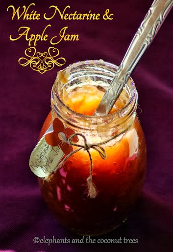 - Wash and wipe the fruits . Discard seed need not remove the peel as it becomes soft and not visible in the jam.Slice nectarines into bigger pieces and chop the apples as nectarines cook faster than apple.