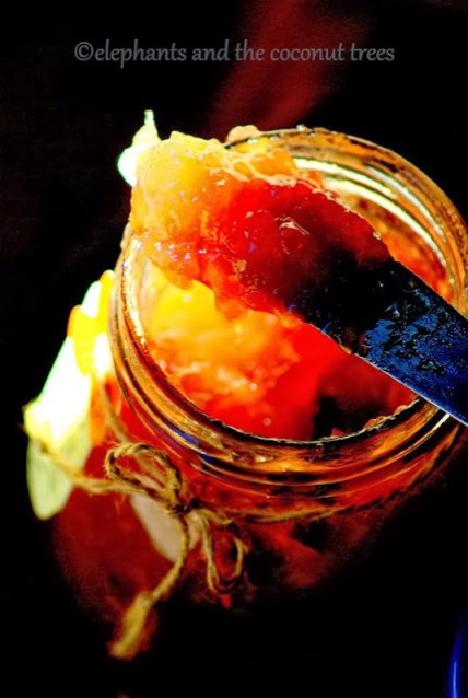 At home mango,guava,banana, rose apple, mulberry etc were eaten only fresh.There was no excess… come on! what are friends for, to share the produce right !! More over my folks never approved of bread and jam as a satisfying breakfast. Bakery bread used to be served only with stews.Indians by large go for a savory breakfast, their preference of fiery spice could be the reason behind the wide variety of pickles available there than jams.