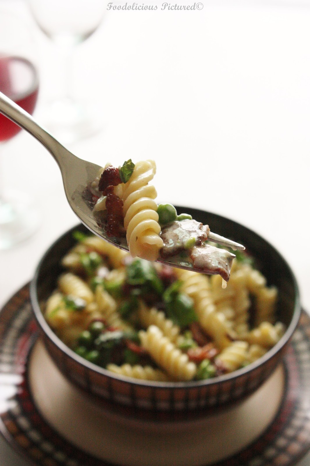Give me a bowl of pasta any time of the day and you see me happily gobbling it way and if its white sauce, more better. Of the few pasta recipes that I treasure, this is one my favorite and trust me I am addicted to these.