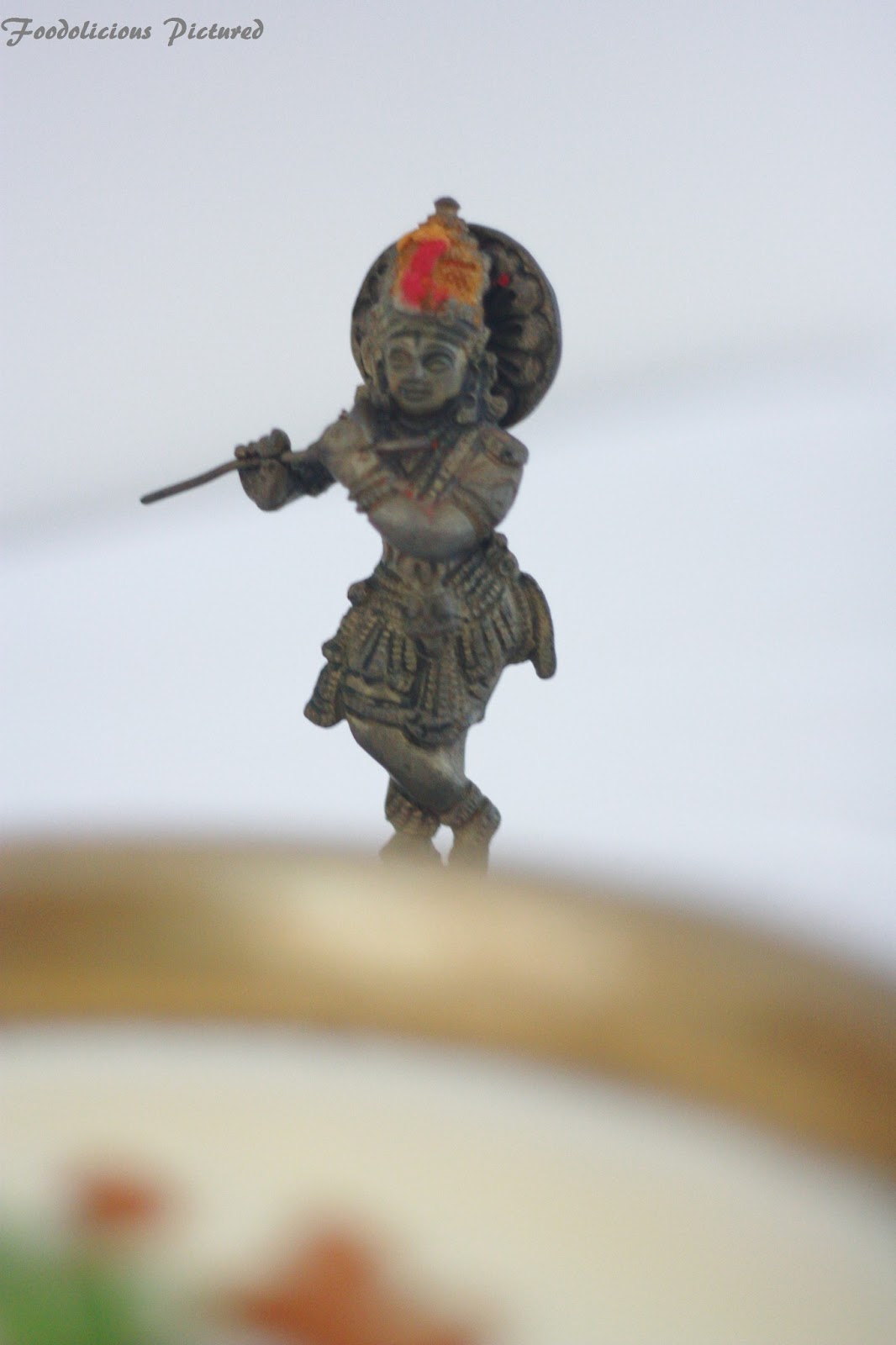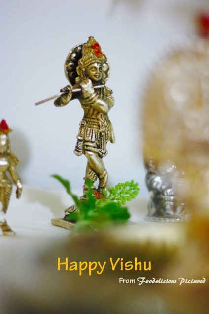 I let go of the Vishu shopping, and did off with everything I could find in the fridge… Instead of konnapoo it was tulasi kadhir ( holly basil) from my little garden.