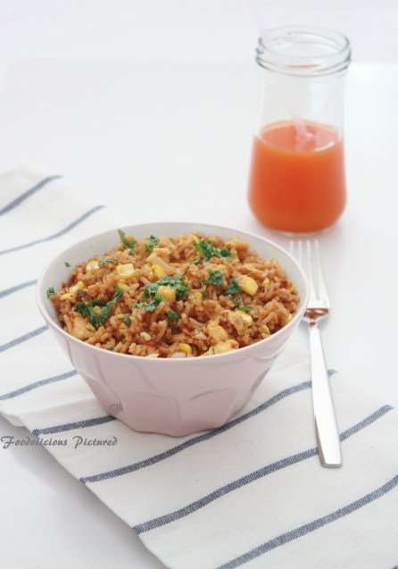 Pour this over the rice along with lemon juice and mix well. Check for seasoning and adjust accordingly.