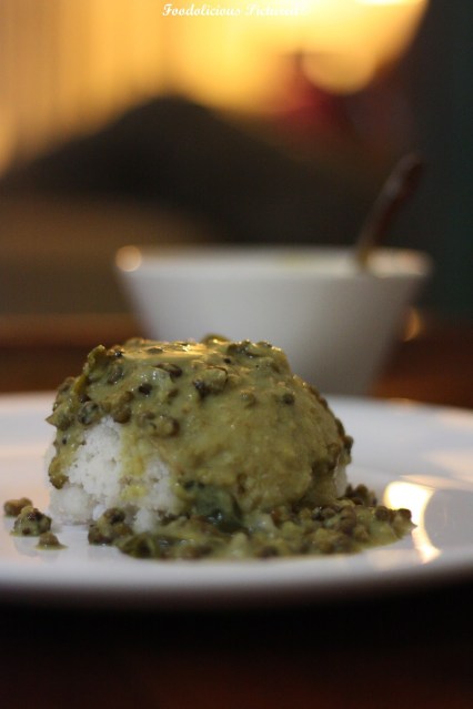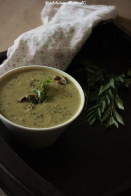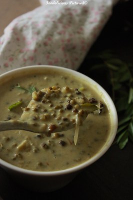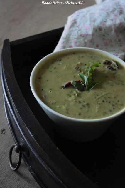 In pressure cooker, cook the payar/mung been with green chili, turmeric powder and add water a required. Once done, uncover and keep the heat over medium heat.Stir the coconut paste, salt and cook for 4-5 minutes. Add the coconut milk, (add water to adjust the consistency of the curry if need be) few curry leaves; bring to a gentle simmer and turn off the heat.