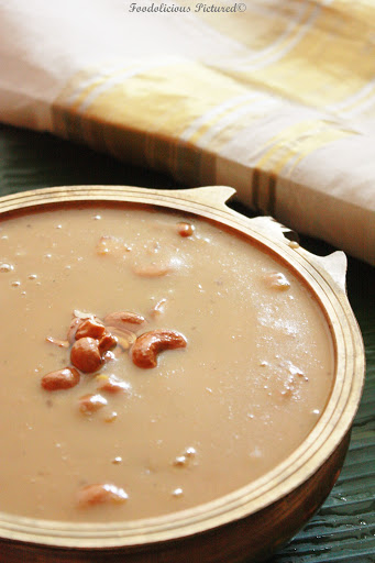 In a small frying pan, heat 1 tablespoon of ghee and fry the cashew and coconut pieces (if using) till golden brown. Add this to the payasam and mix well. Serve hot.