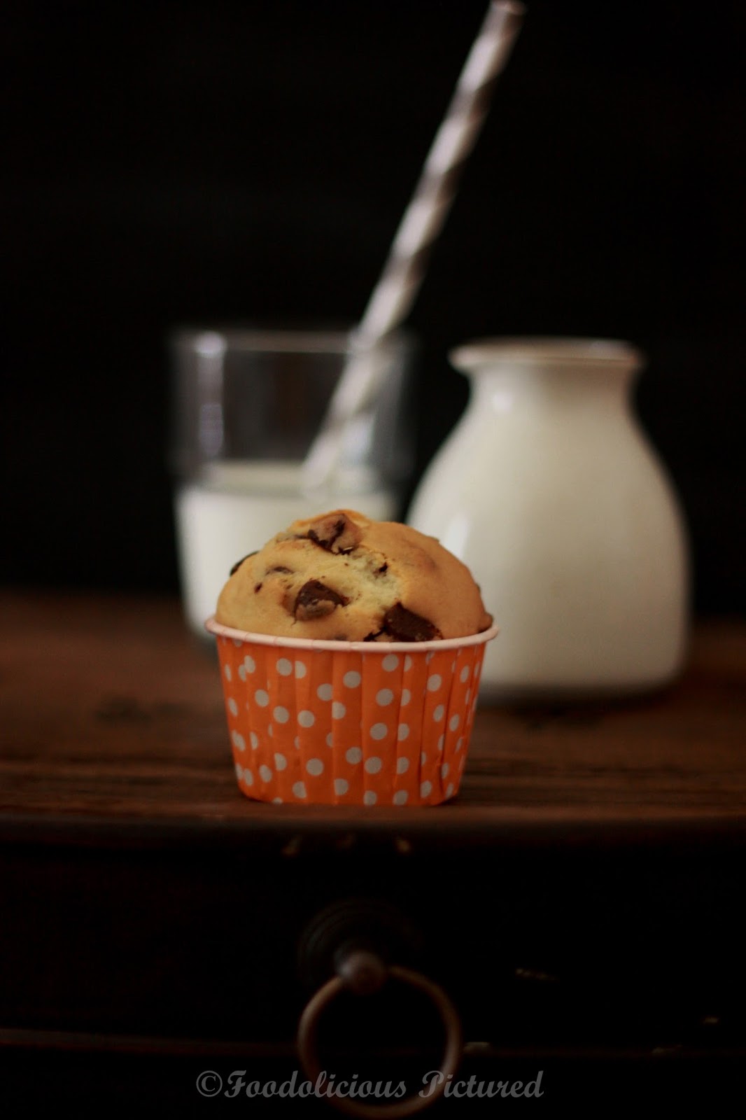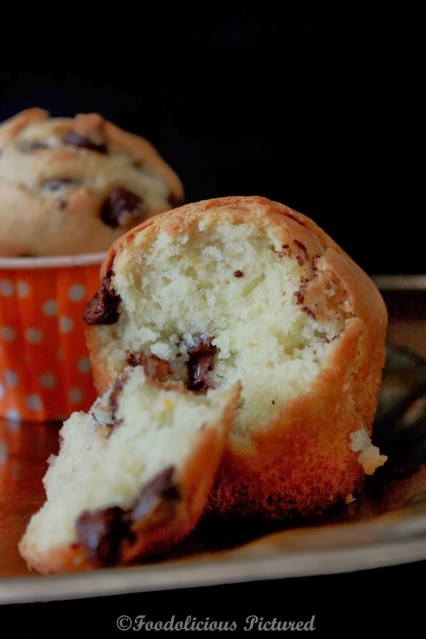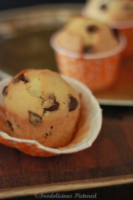 Fold in the choco chips and divide the batter equally into the lined paper muffin liners and bake for 20-25 minutes or when toothpick inserted in the center of the muffins comes out clean.