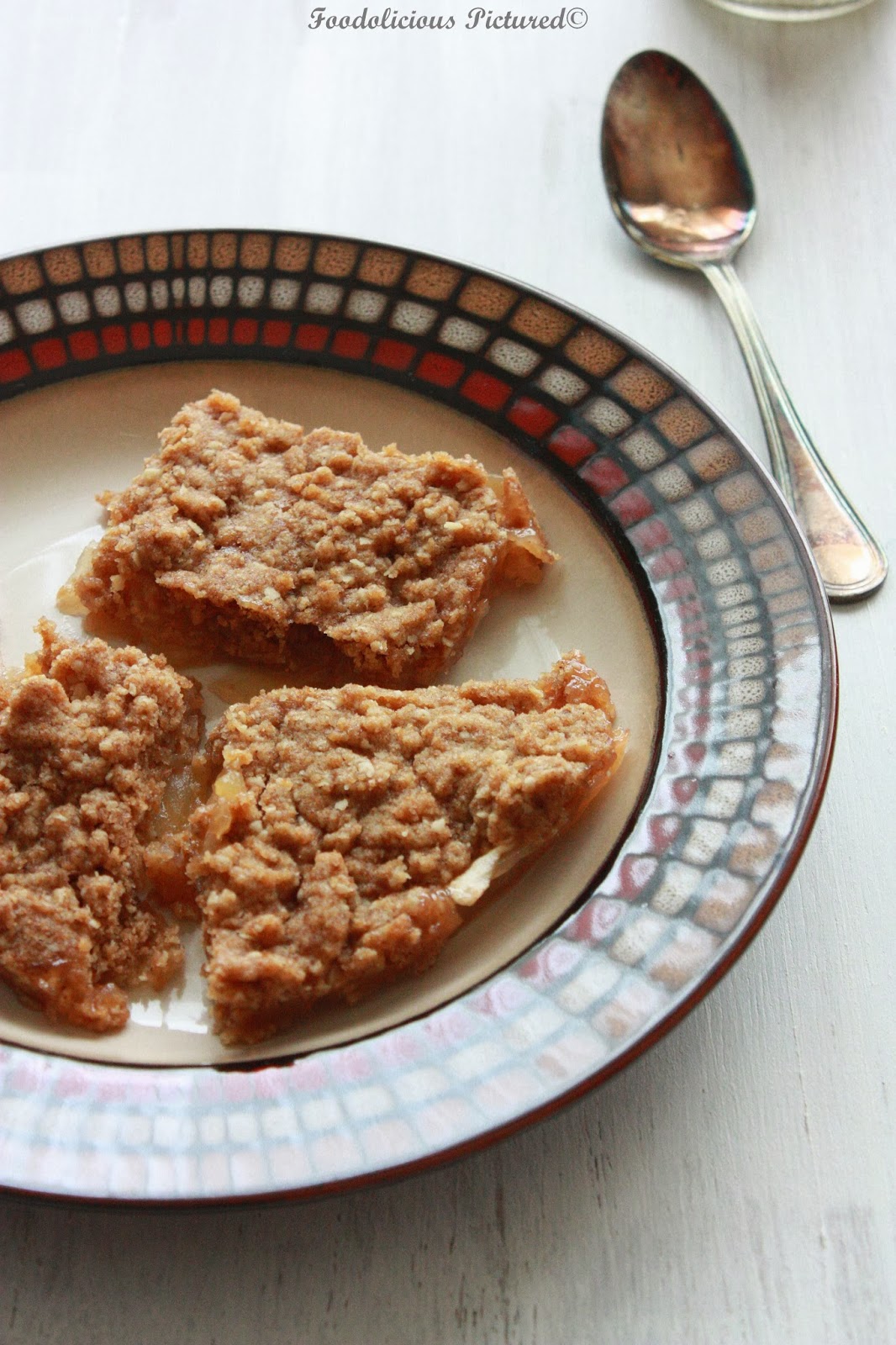 In food processor, combine the flour, brown sugar, oats, cinnamon, salt and pulse. Add the butter cubes and pulse again till everything starts to form lumps.