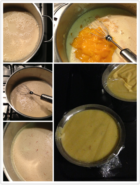 ensuring no skin if formed. Once cooled completely add the Mango puree, ground cardamom and mix well.